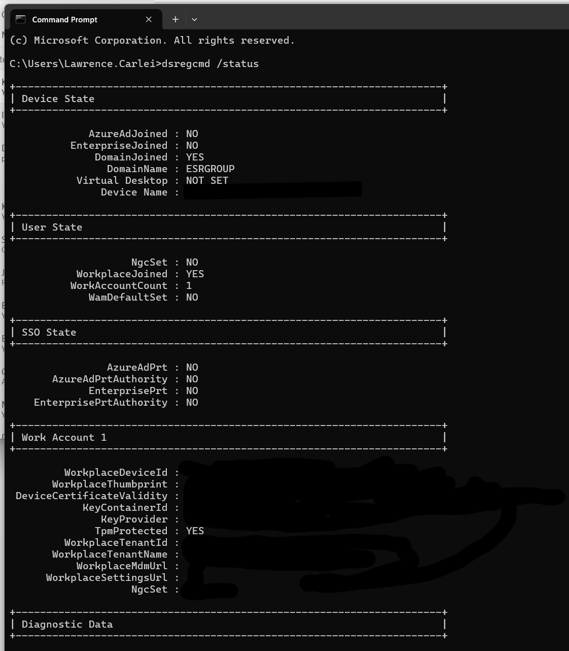 19. Verify it is registered correctly by typing in on CMD: dsregcmd /status